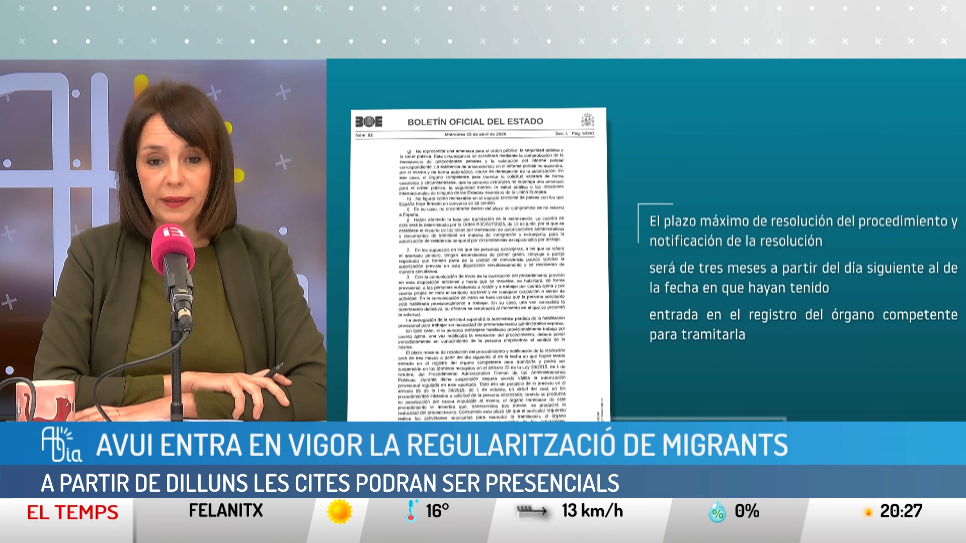 Avui entra en vigor la regularització de migrants. A partir de dilluns, les cites podran ser presencials. Algunes comunitats governades pel PP recorren la mesura. Mor un ciclista a Sa Calobra. L'accident va mobilitzar un ampli dispositiu d'emergències. El tren de Palma a Llucmajor, cada vegada més a prop. Les obres començaran el 2028 i acabaran l'any 2032. Acomiadament a una dona migrant a Formentera. Era d'origen subsaharià i estava embarassada de 5 mesos.