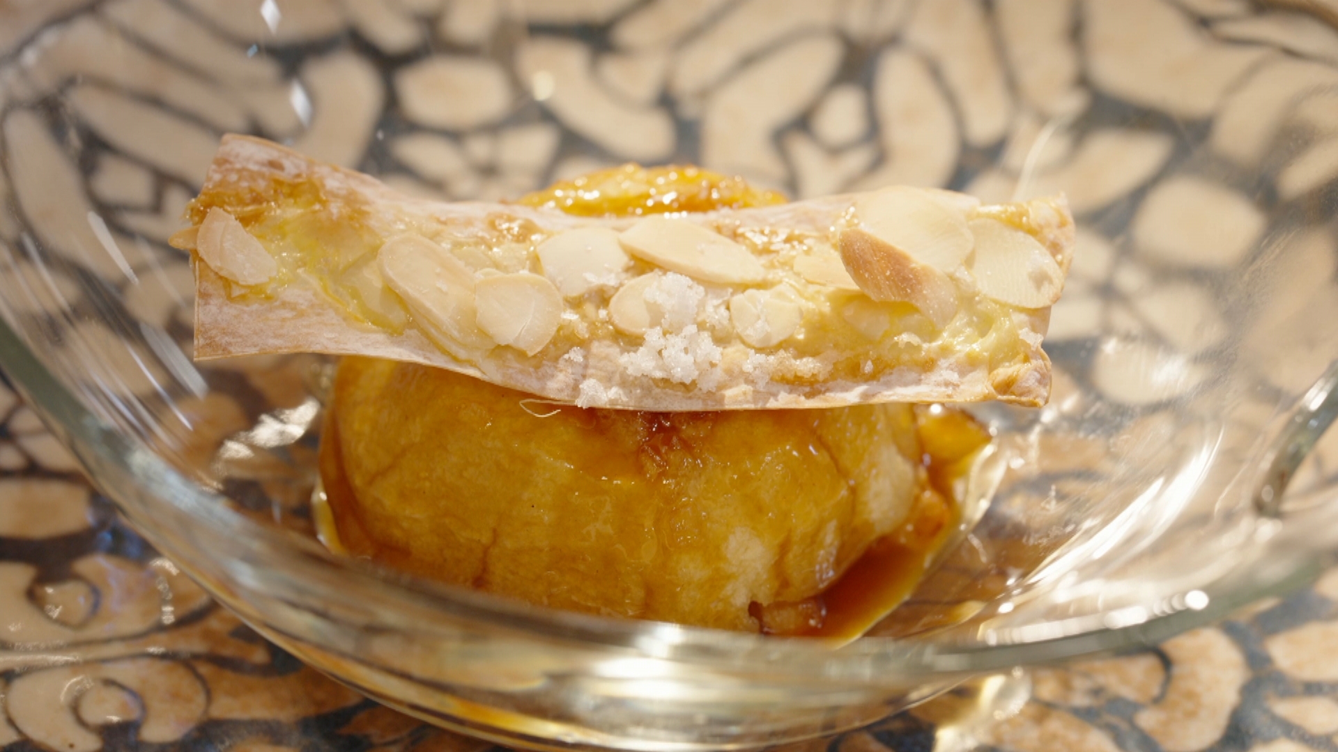A taula' és el nou programa d'en Tomeu Caldentey. Cuinar és experimentar i compartir, i en Tomeu ho fa cada dia elaborant receptes de tota casta, des de la recepta més refinada fins a aquella que va aprendre de la padrina; plats dolços i salats, els clàssics de la cuina balear i també d'exòtics. En aquest capítol cuinarem unes pomes al forn amb ametlla i taronja. Començarem pelant i xapant les pomes, les farcirem amb un massapà i les enfornarem. Dins una pella, farem una salsa amb les pells i aromes de taronja. I dins una cassola, courem uns daus de poma amb fruita seca. Acabarem enfornant uns cruixents de pasta fil·lo. 'A taula' ha estat produït per Espiral Producciones TV en coproducció amb IB3 Televisió.