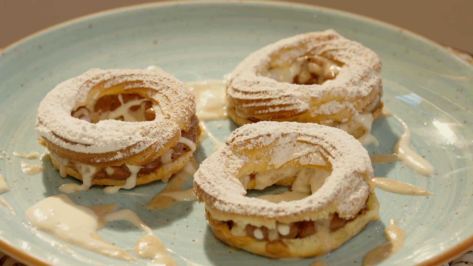 En aquest capítol elaborarem unes corones de xocolata amb fruits secs. Començarem enfornant una pasta de lioneses. Després desfarem xocolata negra i en farem una mousse. També cuinarem dues salses: una de xocolata blanca, i una de fruits secs. Xaparem les corones i les servirem farcides amb la mousse i una cobertura de xocolata.