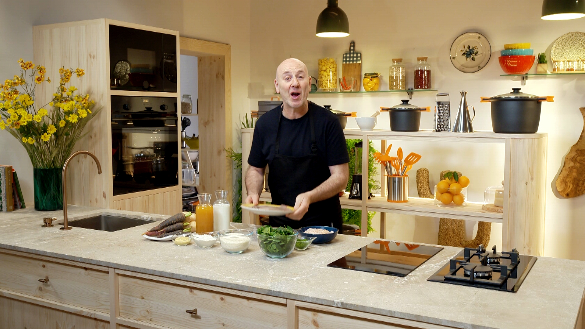 Llenguadina amb pastanagues, espinacs i gambes 'A taula' és el nou programa d'en Tomeu Caldentey. Cuinar és experimentar i compartir, i en Tomeu ho fa cada dia elaborant receptes de tota casta, des de la recepta més refinada fins a aquella que va aprendre de la padrina; plats dolços i salats, els clàssics de la cuina balear i també d'exòtics. En aquest capítol cuinarem llenguadina amb pastanagues, espinacs i gambes. Primer de tot arreglarem la llenguadina i l'omplirem amb uns espinacs a la crema i coes de gamba. Després l'enfornarem. Com a guarnició, ofegarem pastanagons i fregirem xirivia. 'A taula' ha estat produït per Espiral Producciones TV en coproducció amb IB3 Televisió.
